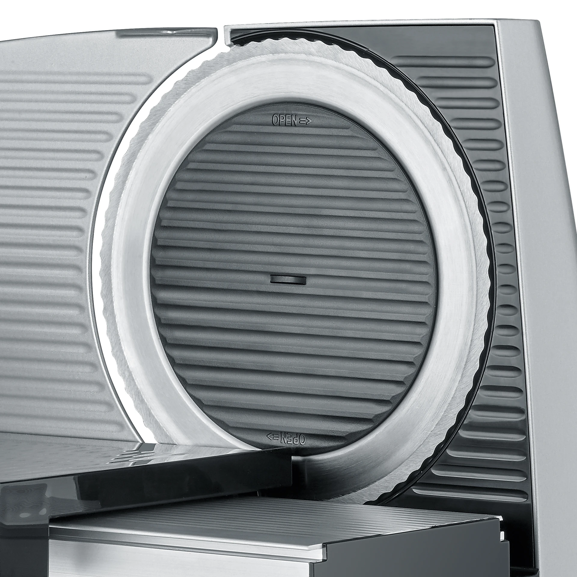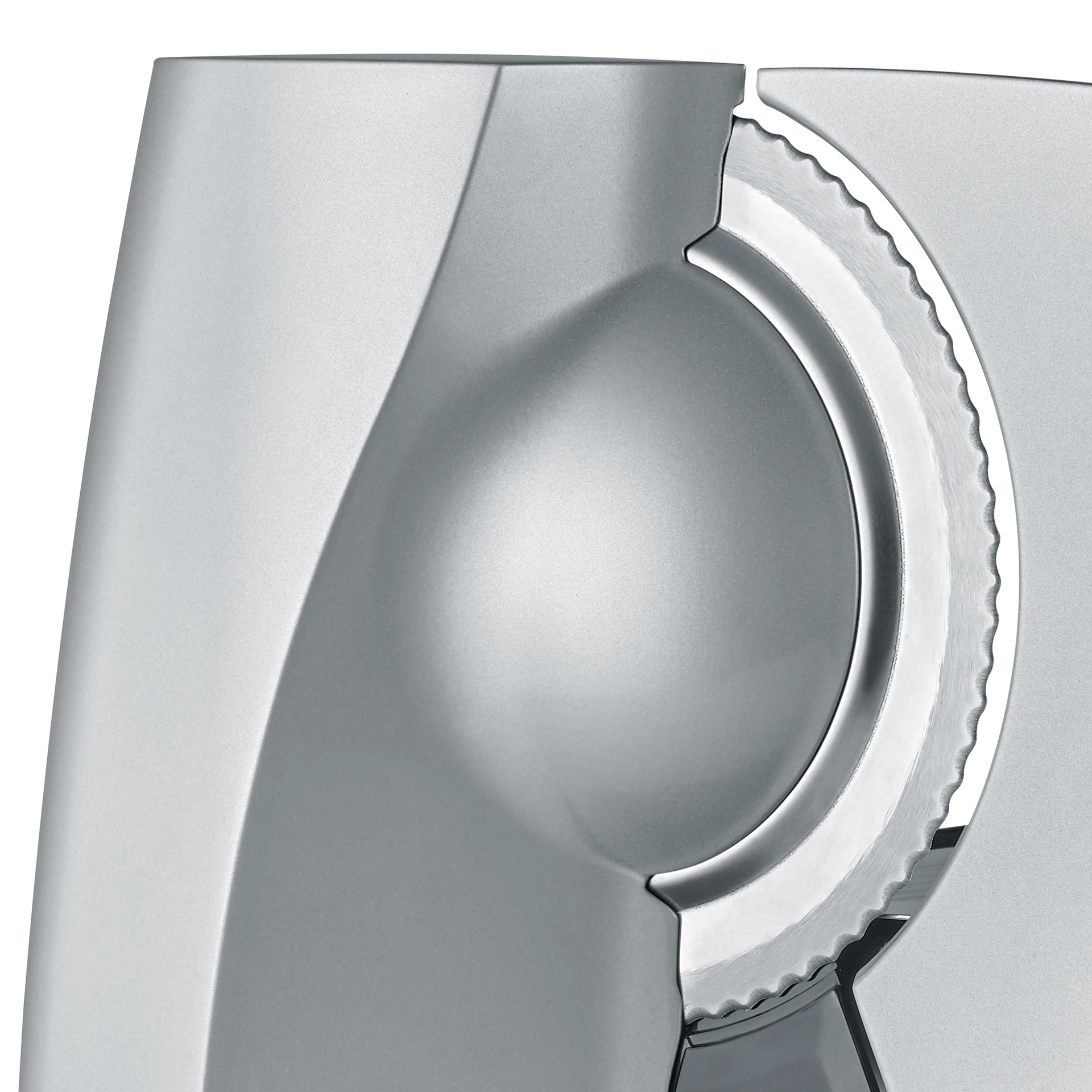 Zúbkovaný nerezový nôž (Ø 170 mm) s rýchlouzávierkou – zaisťuje optimálne rezanie a je dostatočne výkonný aj pre tvrdé kôrky
